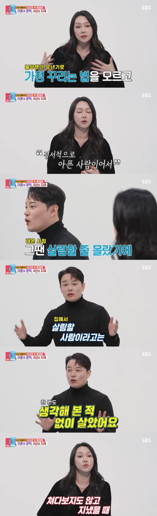 그는 자신의 잘못은 모르고 차지연이 잘못하고 있다고 생각했다며 "저건 마음의 병이다. 저 사람 잘못이라고만 생각했다. 계속 어긋났다"고 회상했다.