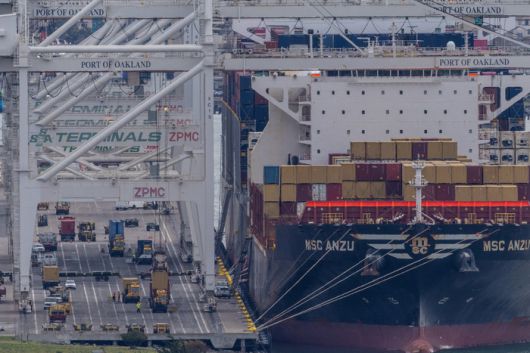 도널드 트럼프 미국 대통령의 ‘관세 전쟁’ 개시로 무역 긴장이 고조되는 가운데 3일(현지시간) 미국 캘리포니아주 오클랜드항에 화물선이 정박해 있다. 로이터연합뉴스 |