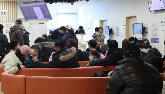 인플루엔자(독감)의 확산세가 이어지고 있는 12일 서울 한 어린이 전문 병원이 내원객들로 붐비고 있다. 연합뉴스 |