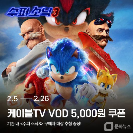 (문화뉴스 이미숙 기자) 홈초이스(대표 김태율)가 오는 5일부터 영화 '수퍼 소닉 3'의 케이블VOD 서비스를 시작한다.