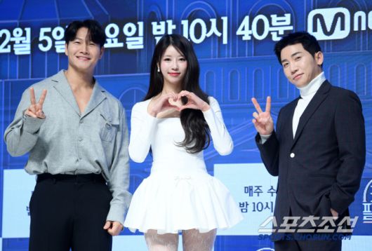 Mnet '커플팰리스2' 제작발표회가 4일 서울 강남구 논현동 엘리에나 호텔에서 열렸다. 김종국, 미주, 유세윤이 포토타임을 갖고 있다. 논현동=박재만 기자 pjm@sportschosun.com/2025.02.04/