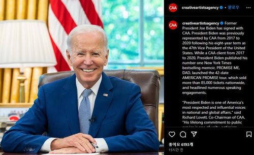CAA는 2017년 바이든 대통령이 출간한 회고록 '약속해주세요 아버지'의 홍보를 맡았던 회사다. 큰아들 보의 죽음을 다룬 이 책은 베스트셀러에 올랐고, 2020년 대선 출마의 디딤돌로 여겨진다.