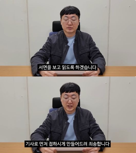 공개된 영상에서 '충주맨' 김선태는 "먼저 제 발언에 실수가 있을 수 있어 서면을 보고 읽겠다"며 양해를 구했다.