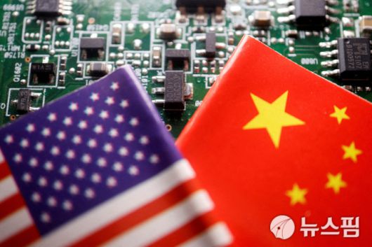 반도체와 미국, 중국 국기 일러스트 이미지. [사진=로이터 뉴스핌] |