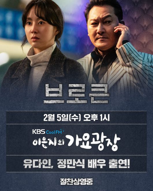 영화 ‘브로큰’의 주역들이 2월 5일 라디오와 유튜브 출격 소식을 알렸다. 먼저 낮 1시 생방송 보이는 라디오로 진행되는 KBS Cool FM ‘이은지의 가요광장’에 유다인과 정만식이 출격한다. 언론배급시사회 이후 탄탄한 연기 내공을 가진 배우들의 강렬한 시너지가 돋보인다는 극찬을 받고 있는 만큼 두 사람은 영화와 캐릭터에 대한 밀도있는 이야기를 풀어낼 예정이다. 이 외에도 촬영 현장의 비하인드 스토리 등 청취자들이 궁금해할 만한 이야기들로 알찬 소통의 시간을 보낼 예정이다. 독보적인 매력을 발산하는 유다인과 정만식의 첫 라디오 홍보 일정에 더욱 관심이 쏟아진다.