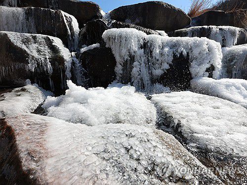강추위에 얼어붙은 대천천 계곡 |