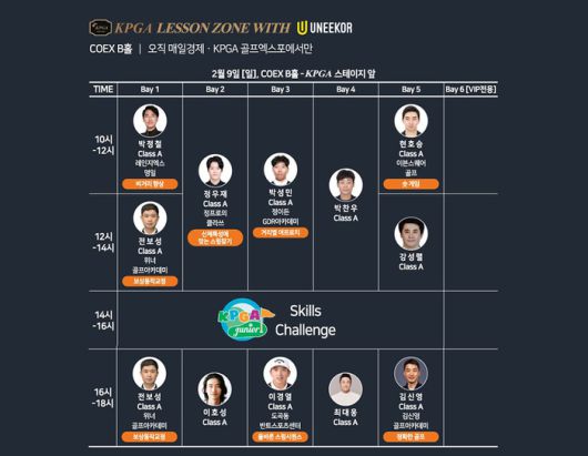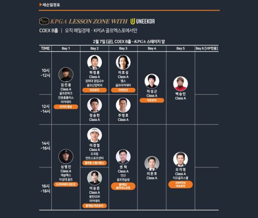 가장 매력적인 것은 ‘참관객은 누구나’ KPGA 회원 원 포인트 레슨을 받을 수 있다는 점. ‘KPGA 레슨존’에 방문하면 드라이버 레슨부터 아이언 정확도 레슨, 어프로치 레슨까지 다양한 주제로 스킬업을 할 수 있다. 유튜브 실버 버튼 ‘정프로의 클라쓰’를 운영하는 정우재 프로를 비롯해 KPGA 클래스 A프로(골프 교습 전문가)들이 기다리고 있으니 시간표를 확인해 볼 것.
