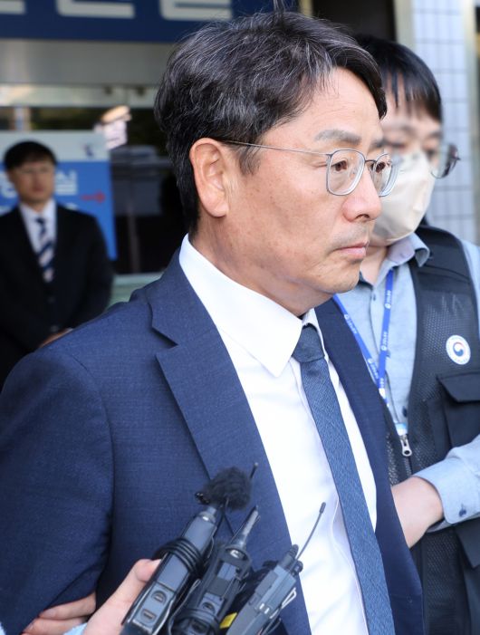 중대재해처벌법 위반 혐의를 받는 세아베스틸 김철희 전 대표가 지난해 5월 14일 전주지방법원 군산지원에서 열린 영장실질심사(구속 전 피의자 심문)를 마치고 호송되고 있다./뉴스1 |