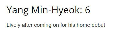 런던 지역 축구 소식을 전문으로 다루는 ‘웨스트 런던 스포츠’는 양민혁의 데뷔 모습을 두고 “교체 출전에도 불구하고 경기의 흐름에 빠르게 녹아들어 활발한 움직임을 보였다”며 평균 평점 6점을 기록했다고 전했다.