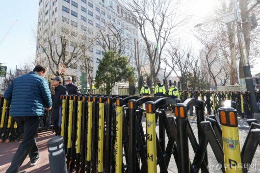지난달 19일 새벽 난입 사태로 인해 서부지법 통제가 강화된 모습/사진=뉴스1 |