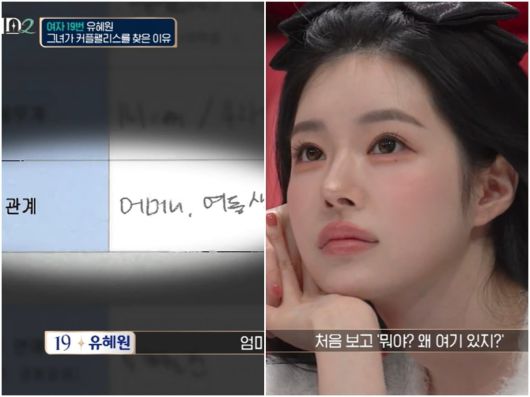 참가자들 사이에서는 "소문이 있지 않느냐, 누구의 옛 여자친구 아니냐"는 이야기가 돌기 시작했다. 집중된 관심 속에서 유혜원은 당황한 듯한 모습을 보이며 "눈을 마주치기가 어렵더라. 내가 너무 과몰입한 것 같다. 어떡하지?"라며 난감해했다.