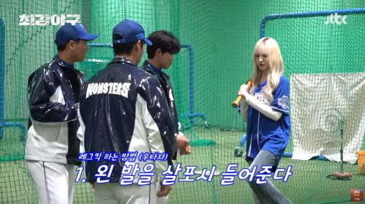 JTBC '최강야구' 측은 5일 유튜브 채널을 통해 '코칭하러 왔다가 다이브가 돼. 영건즈도 아재들도 신난 아이브 안유진X리즈 시구·시타 연습. '최강야구' 비하인드"라는 제목의 영상을 게재했다.