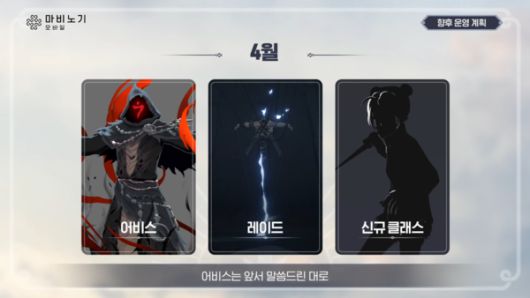 - 4월 : 고난도 던전 어비스, 레이드, 신규 클래스