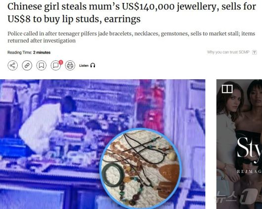 (서울=뉴스1) 박형기 기자 = 중국에서 한 소녀가 단돈 60위안(약 1만2000원)의 귀걸이를 사기 위해 엄마의 100만위안(약 2억원) 상당의 보석을 훔쳐 판 사건이 발생, 육아 논쟁을 일으키고 있다고 사우스차이나모닝포스트(SCMP)가 6일 보도했다.