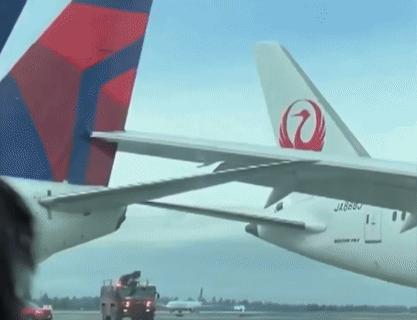 델타항공 측은 "기체 외부에 생긴 얼음을 제거하기 위해 대기 중이었으며, 그 과정에서 일본항공 여객기의 날개 끝이 꼬리 부분과 접촉했다"며 "승무원과 승객 모두 무사하다"고 밝혔다.