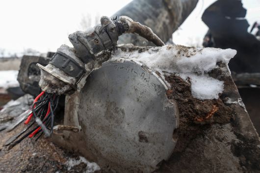 6일(현지 시각) 우크라이나 하르키우에서 발견된 미사일의 잔해에 대해 우크라이나 당국은 북한에서 제조해 러시아가 우크라이나 공격에 사용한 것으로 추정했다. /로이터통신 |