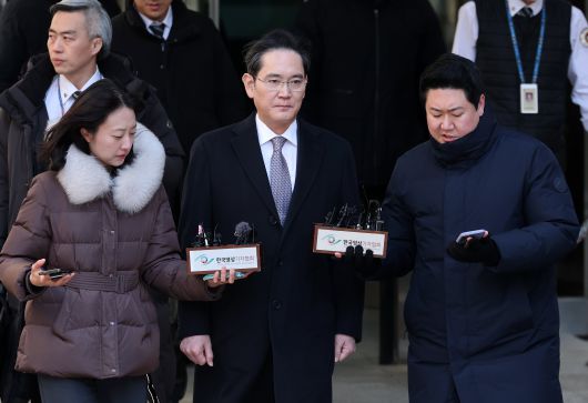 이재용 삼성전자 회장이 지난 3일 서울고법에서 열린 '삼성바이오로직스 분식회계 의혹' 항소심 선고 공판에서 무죄를 선고받고 법정을 나서고 있다. /뉴스1 |