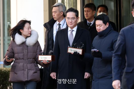 이재용 삼성전자 회장이 지난 3일 서초구 서울고법에서 열린 그룹 경영권 승계 관련 부당합병·회계부정 의혹 항소심 선고공판에서 무죄 판결을 받은 뒤 법원을 나서고 있다. 권도현 기자 |