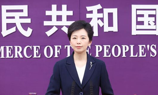 정례브리핑을 진행하는 허융첸 중국 상무부 대변인. 중국 상무부 홈페이지 갈무리 |