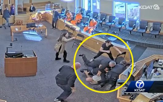 지난달 31일 미국 뉴멕시코주 앨버커키의 베르날릴로 카운티 법정에서 몸싸움이 벌어졌다. /사진=뉴욕포스트 |