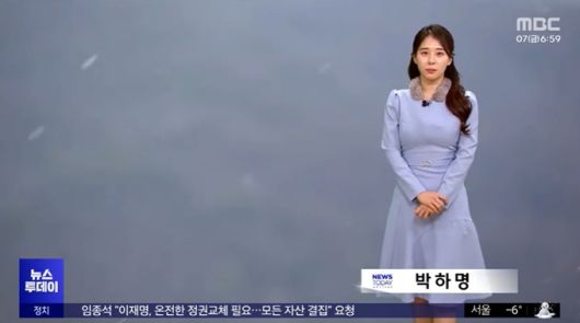 7일 방송된 MBC 뉴스투데이에서 박하명 기상캐스터가 날씨를 전하고 있다. |