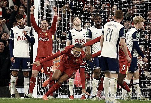 손흥민 소속팀인 잉글리시 프리미어리그 토트넘은 7일(한국시간) 영국 리버풀 안필드에서 열린 2024-2025시즌 잉글랜드 풋볼리그(EFL) 카라바오컵(리그컵) 준결승 2차전 리버풀과 맞대결에서 0-4로 대패했다.