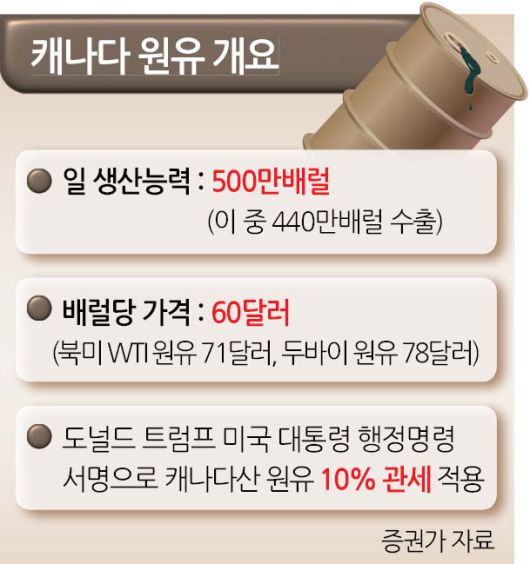 도널드 트럼프 미국 대통령이 캐나다·멕시코에 대한 관세 인상을 예고한 가운데 실제로 캐나다산 원유에 대해 조정 요율대로 부과시 국내 정유회사 입장에서는 호재가 될 수 있다는 분석이 나온다.