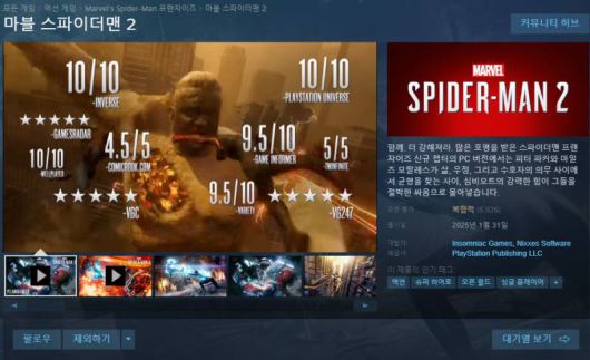 명성과 달리 안좋은 출발을 보이고 있는 마블 스파이더맨2 PC |
