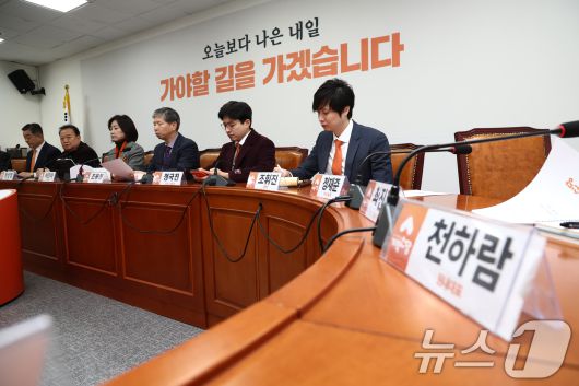 5일 오전 서울 여의도 국회에서 천하람 개혁신당 원내대표 등이 불참한 가운데 허은아 대표 주재로 최고위원회의가 열리고 있다. 2025.2.5/뉴스1 ⓒ News1 김민지 기자