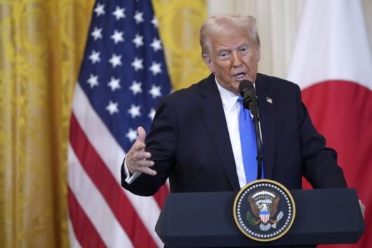 도널드 트럼프 미국 대통령이 7일(현지 시간) 백악관에서 이시바 총리와 회담한 후 공동기자회견을 열고 발언하고 있다., ,AP 뉴시스 |