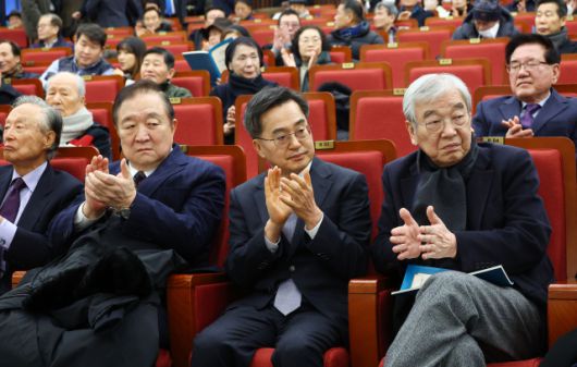 ▲김동연 경기도지사가 7일 서울 국회 도서관에서 열린 도서 「풍운의 정치인 김상현을 읽다」 출판기념회에 참석해 박수를 치고 있다. ⓒ연합뉴스