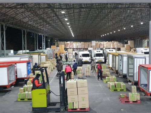한 신선식품 플랫폼 소속 직원들이 새벽배송 업무를 하고있다. |