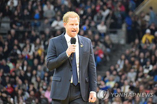 (밴쿠버=연합뉴스) 8일(현지시간) 캐나다 밴쿠버 BC플레이스 스타디움에서 열린 '2025 캐나다 인빅터스 게임'(제7회 세계상이군인체육대회) 개막식에서 영국 해리 왕자가 연설하고 있다. 해리 왕자는 인빅터스 게임의 창설을 주도했다. 2025.2.9 [보훈부 공동취재단]