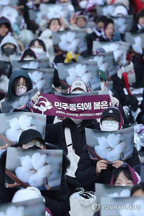 재학생연합은 이날 지난해 남녀공학 전환에 반발한 학생들의 시위 당시 학교 건물 훼손에 대한 학교 측의 고소 취하 등을 요구했다. 2025.2.9