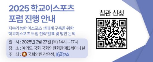 한국e스포츠협회가 더불어민주당 강유정 의원과 함께 '2025 학교 이스포츠 포럼'을 오는 27일 오후 2시에 국회의원회관 제3세미나실에서 개최한다.