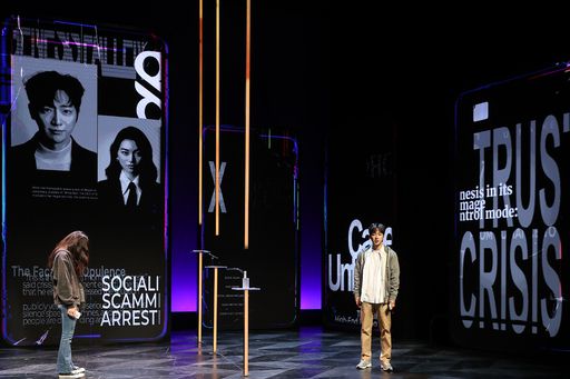 지난 5일 열린 프레스콜에서 김지호 연출가는 “애나를 묘사하고, 이 사건을 소비하기보다는 이 사회에서 왜 애나 같은 인물이 만들어졌는지를 보여주고 싶었다”고 말했다. 그러면서 “우리는 소셜미디어 중독을 강요받는 시대에 살지 않느냐”고 반문하며 “‘진짜 나’와 ‘보이는 나’ 사이의 간극이 커지는 사회에서 무엇이 진짜고, 무엇이 가짜인지를 생각해보고자 했다”고 강조했다. LG아트센터 서울에서 3월 16일까지.