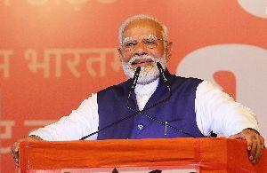 나렌드라 모디 총리가 작년 6월 4일(현지시간) 뉴델리 당사에서 연설하고 있다. 나렌드라 모디 인도 총리가 오는 13일(현지시간) 도널드 트럼프 미국 대통령과 첫 정상회담을 갖는 가운데 미국의 관세 청구서에 대비해 미리 몸을 낮추는 유화적 태도를 보였다. 연합뉴스 |
