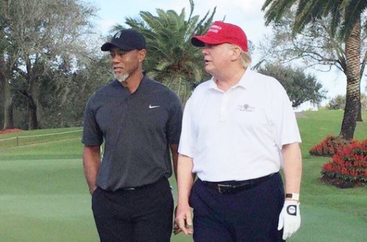 도널드 트럼프 미국 대통령이 골프 황제 타이거 우즈 부자(父子)와 골프를 쳤다.