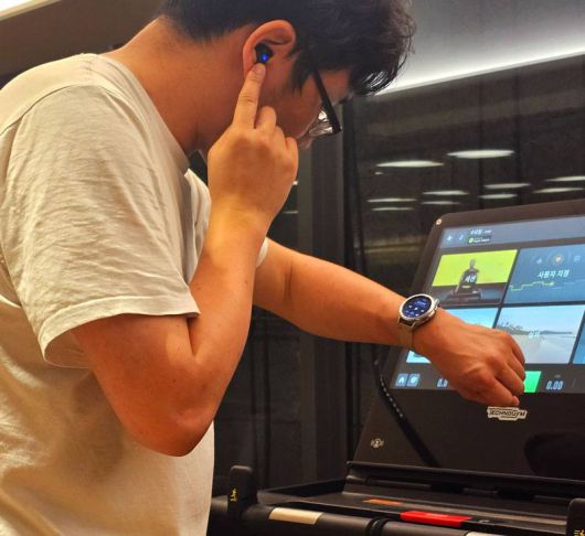 운동을 하며 갤럭시워치로 음악 감상을 하는 모습 / 출처=IT동아 |