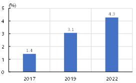 기업의 AI 도입률은 2017년 1.4%에서 2022년 4.3%로 증가했다.