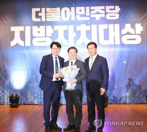 민주당 지방자치대상 최우수상 받은 박승원 광명시장(가운데) |
