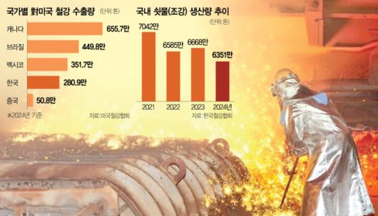 철강 업계는 미국이 기존 할당량을 줄이거나 쿼터제를 폐지하면 타격이 엄청날 것으로 우려하고 정부에 수출 쿼터 유지를 최우선으로 요청했다. 지난달 트럼프 대통령 취임 이후 산업통상자원부가 주재한 철강 업계 간담회에서도 기업들은 수출 쿼터 유지를 건의했다. 미국은 한국 철강 수출에서 차지하는 비중이 물량 기준으로 3위(9.8%), 금액 기준으로는 6조 3000억 원에 달해 1위(12.4%)일 만큼 핵심 시장이기 때문이다. 철강 업계 관계자는 “미국이 관세 부과에 이어 수출 물량까지 건드리면 그나마 철강사들이 돈을 벌던 수출에서도 큰 타격을 입을 수밖에 없다”고 했다.