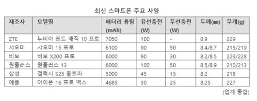 ■中 업체, 배터리 용량·충전 속도 키우기 경쟁