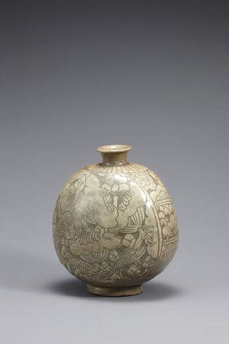 회갈색의 바탕흙 위를 두껍게 칠한 유약은 수수한 듯하나 섬세하다.