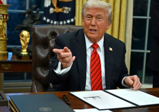 도널드 트럼프 미국 대통령이 10일(현지 시간) 백악관에서 철강과 알루미늄에 25% 관세를 부과하는 행정명령에 서명하고 있다. AFP연합뉴스 |