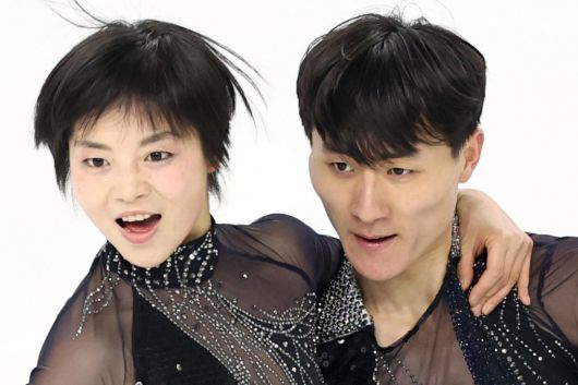 북한 피겨 페어 렴대옥, 한금철이 10일(현지시간) 중국 헤이룽장성 하얼빈 빙상훈련센터 다목적홀에서 훈련하고 있다. 2025.2.10. 뉴스1 |