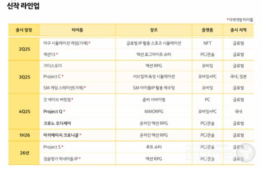 A '크로노 오디세이'나 '아키에이지 크로니클' 같은 장르나 오션드라이브의 미드코어 신작이 준비 중이다. 정식 출시 전까지는 글로벌 시장의 노출을 늘려갈 것이다. 가장 중요한 것은 유저에게 게임의 실체를 보여주고 경험시키고 피드백을 받으면서 공개부터 서비스까지 너무 길지 않도록 1년 안에 서비스를 할 수 있도록 준비할 예정이다. '크로노 오디세이'나 '아키에이지 크로니클'의 CBT가 언제 가능할지에 따라 게임쇼 등의 참가가 결정될 것이다.