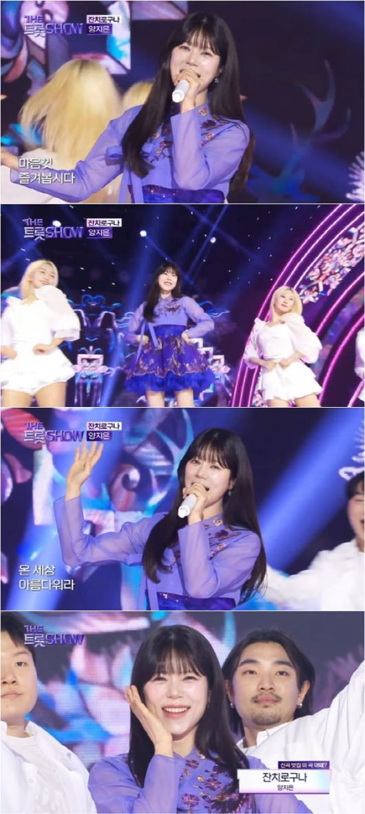 지난 10일 오후 방송된 SBS M '더 트롯쇼'에서는 양지은이 출연해 중독성 강한 '잔치로구나' 퍼포먼스로 현장과 안방 시청자들을 사로잡았다.