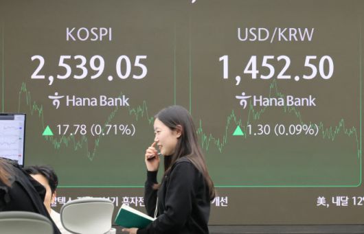 11일 서울 중구 하나은행 본점 딜링룸 현황판에 코스피와 원·달러 환율이 표시돼 있다. (사진=연합뉴스) |