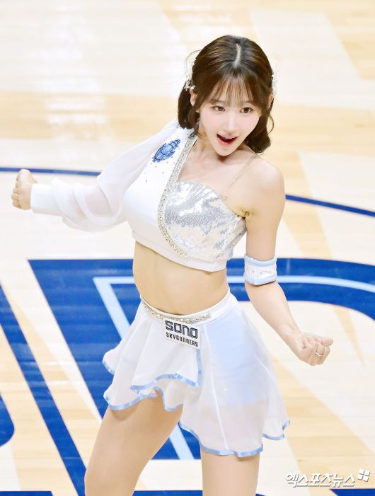 (엑스포츠뉴스 고양, 김한준 기자) 11일 오후 경기도 고양 소노 아레나에서 열린 2024-2025 KCC 프로농구 고양 소노와 울산 현대모비스의 경기, 오서율 치어리더가 열띤 응원을 선보이고 있다.김한준 기자 kowel@xportsnews.com